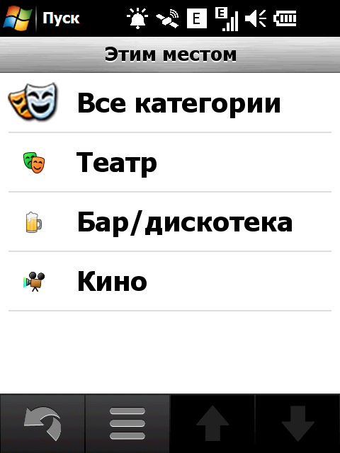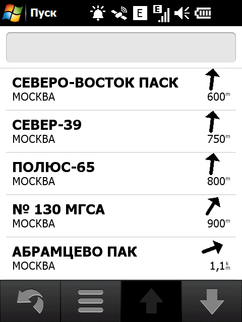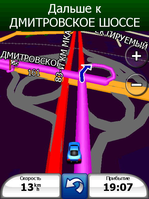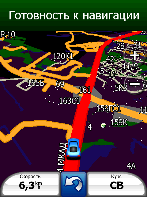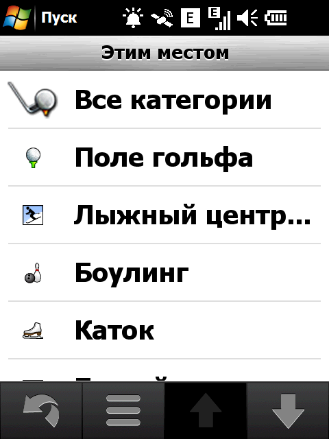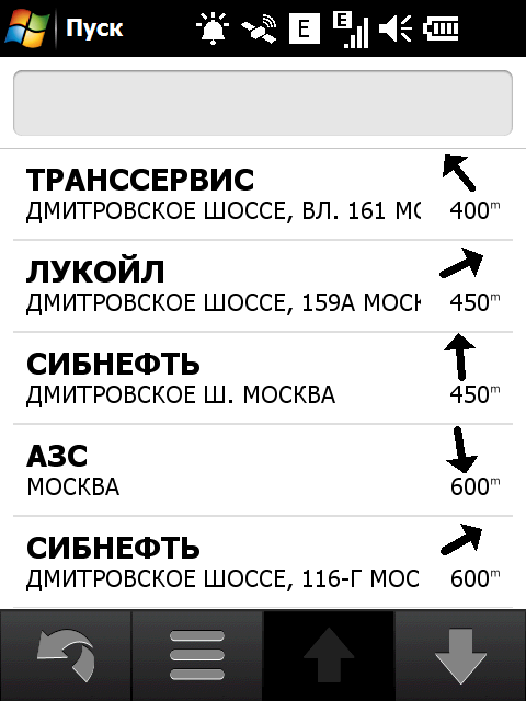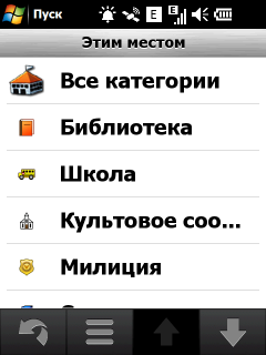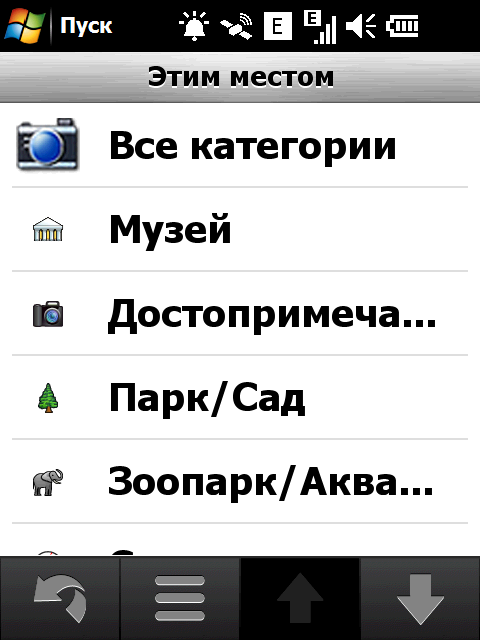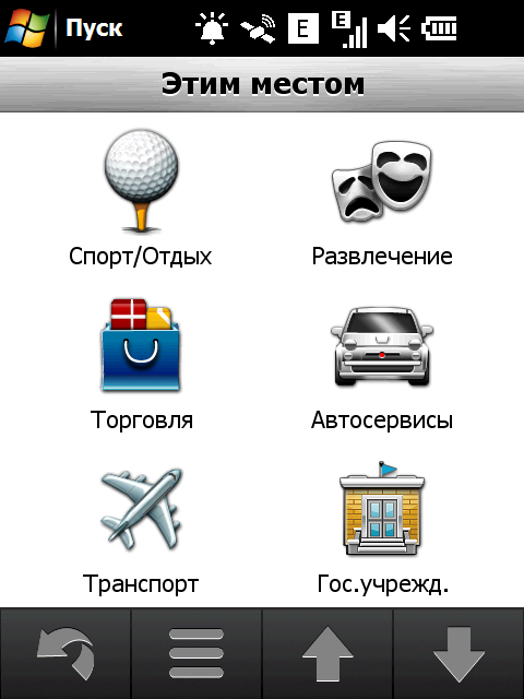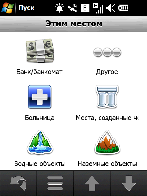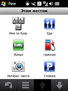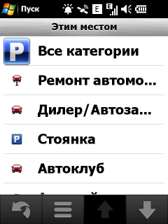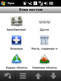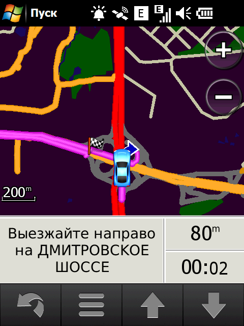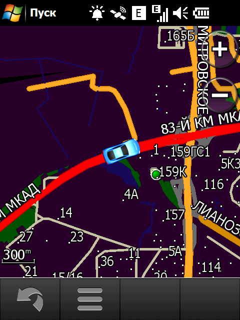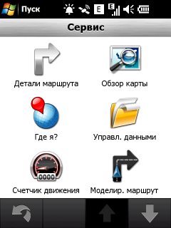 Неприятный недостаток стандартной навигационной программы — невозможность прокрутки карты в основном режиме навигации. Для того чтобы ознакомиться с проложенным курсом, внести свои изменения или просто ознакомиться с окрестностями, придется переключаться в режим обзора карты. Придется прицельно попасть в крошечное изображение автомобиля! Стоит ли напоминать, что во время движения сделать это весьма непросто. Да и микроскопический курсор, которым следует попасть в интересующий объект для получения информации, не добавляет удобства. Хорошо хоть, что программа предоставляет возможность сохранить любую позицию или отправить её посредством электронной почты или сообщением.