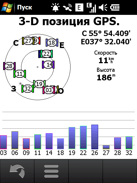 Информация о состоянии GPS модуля отображается одним из значков в верхней панели основного экрана, рядом с индикаторами беспроводной связи и часами. Стоит отметить, что модуль GPS включается автоматически после перезагрузки. В целях экономии за его состоянием энергии приходится за ним приходится следить и вовремя отключать.