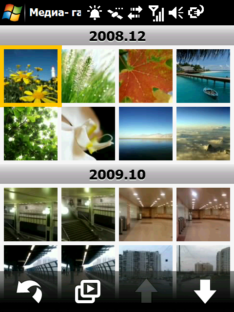Стандартным программам по работе с электронной почтой, сообщениями, календарем и задачами замены не нашлось. Здесь все по-прежнему находится под властью стилуса. А вот вместо альбома и музыкального плеера разработчики коммуникатора предлагают воспользоваться их более удобными аналогами. Все программы выполнены в одном стиле с оболочкой. У них такие же крупные элементы управления. Приложение Медиа-галерея позволяет листать снимки при помощи пассов пальцем, быстро увеличивать их размер. Изображения могут формировать альбомы, либо быть представлены в списке по дате съемки.
