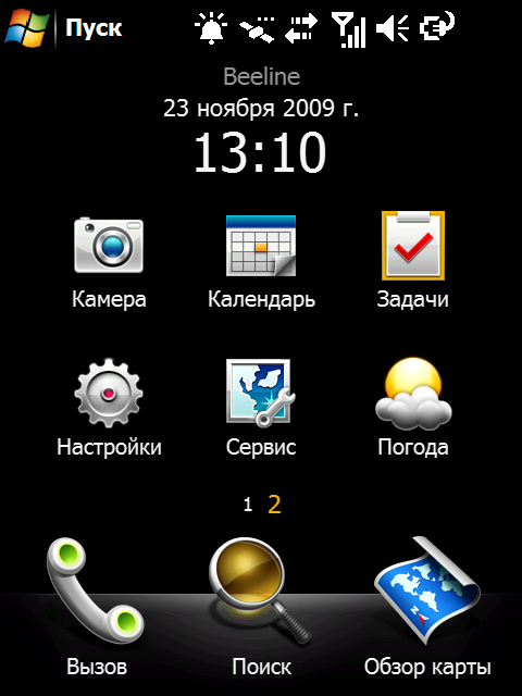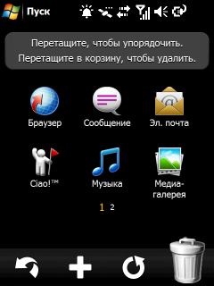 Разработчики коммуникатора постарались сделать все возможное для сокрытия от пользователя неприглядной сущности стандартного интерфейса Windows Mobile. И их можно понять! С тех пор как управление пальцем вошло во всеобщую моду, трудно объяснить пользователю, что ему потребуется стилус.