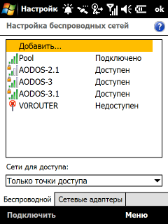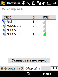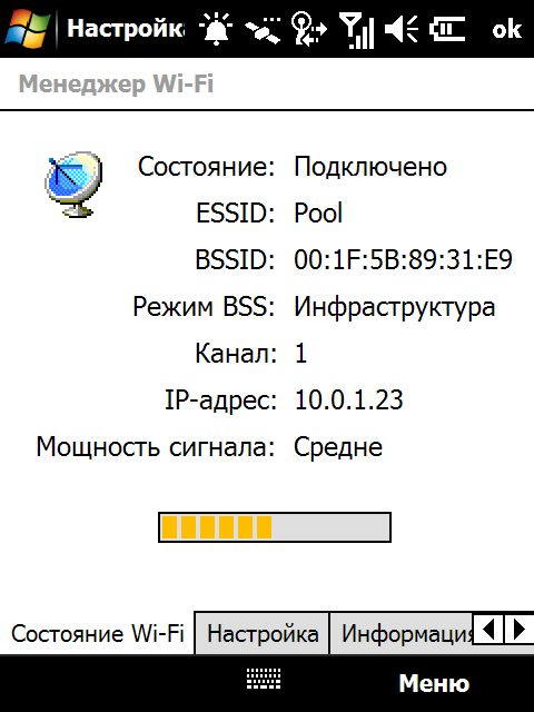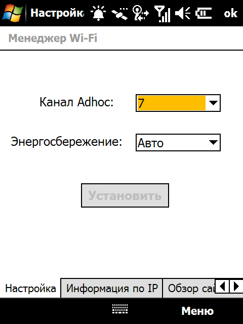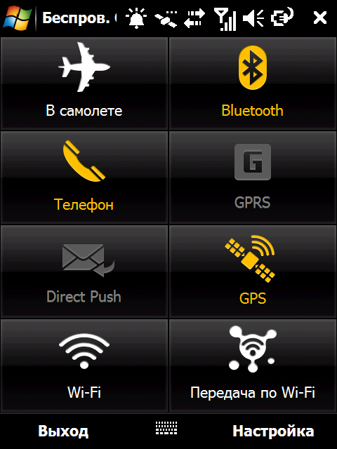Модули Bluetooth и Wi-Fi управляются операционной системой. Однако разработчики коммуникатора заменили стандартный менеджер беспроводных соединений более удобным и красивым аналогом. Для более тонкой настройки работы модуля Wi-Fi установлена программа Менеджер Wi-Fi, содержащая различные сведения о текущем подключении, доступных беспроводных сетях и сетевых настройках. Кроме того, с ее помощью можно изменить режим потребления энергии модулем Wi-Fi.