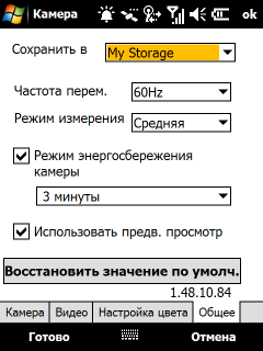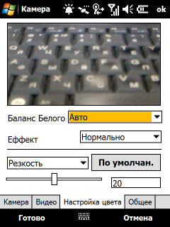 Большинство 3G коммуникаторов оснащаются двумя камерами, и герой обзора не исключение. Основная камера располагается на задней панели компьютера, имеет разрешение 3 мегапикселя и оснащена автофокусом. Светодиодная подсветка и зеркальце отсутствуют (ими вообще хоть кто-то пользуется?). Вторая VGA камера, использующаяся для видеозвонков, находится в верхней части лицевой панели.