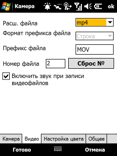 Подробное меню настройки процесса фото и видеосъемки содержит множество параметров, сгруппированных на нескольких вкладках. Среди всего прочего в меню можно изменить: качество снимков (степень сжатия JPEG), баланс белого, эффект съемки (черно-белая фотография, сепия, негатив), резкость, яркость, насыщенность, формат имени файлов и место хранения.