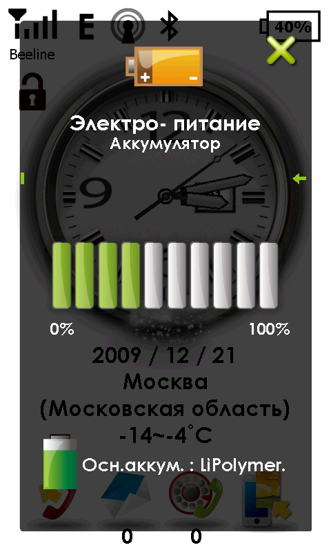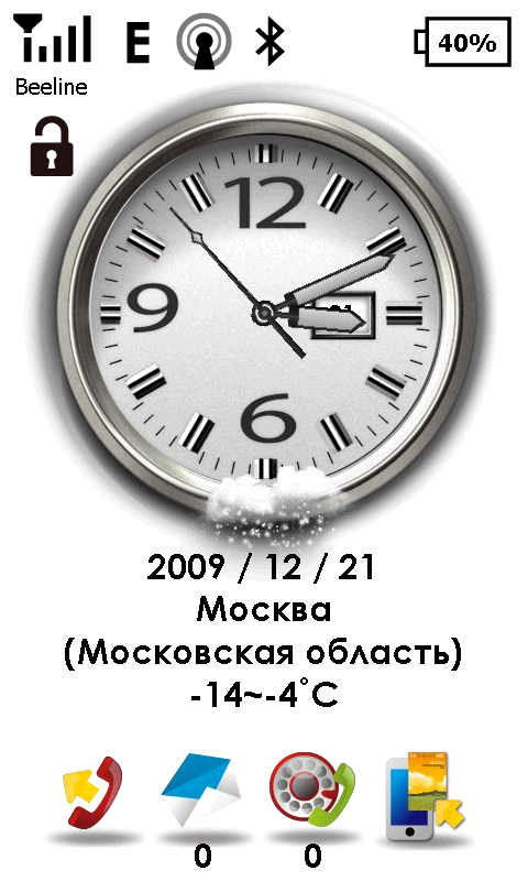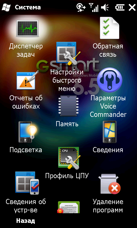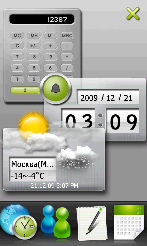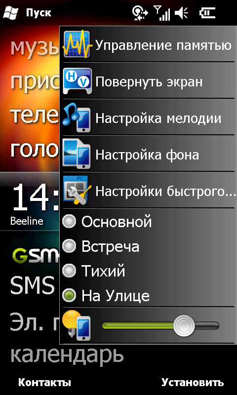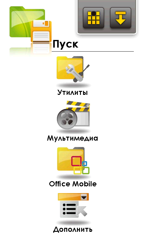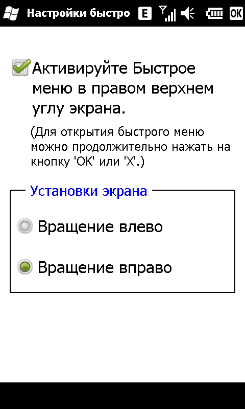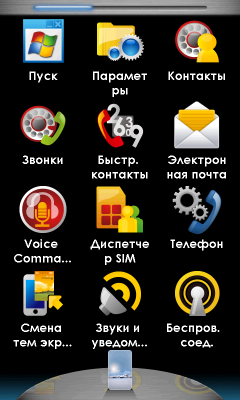 При всем прочем, разработчики оставили кнопку меню «Пуск» на своем месте. Странное решение. Раз уж в корне менять привычный интерфейс, так надо избавляться от всех неудобных элементов. А микроскопический значок меню «Пуск», несомненно, одно из них. На небольшом, но обладающим высоким разрешением экране S1200, попасть по этой иконке, а, следовательно, и к списку программ, можно лишь хорошо прицелившись пером. На попадания пальцем система реагирует через раз (и почему нет отдельной аппаратной клавиши?). Там же сверху остались традиционные значки подключения к сотовой сети, другим беспроводным сетям, индикатор состояния аккумулятора и громкости динамиков. Добавилась иконка Быстрого меню в правом верхнем углу экрана. Из него можно произвести различные действия с коммуникатором: изменить ориентацию экрана, сменить звуковой профиль или увеличить яркость подсветки. Там же можно вызвать диспетчер задач, сменить фоновый рисунок и мелодию вызова.