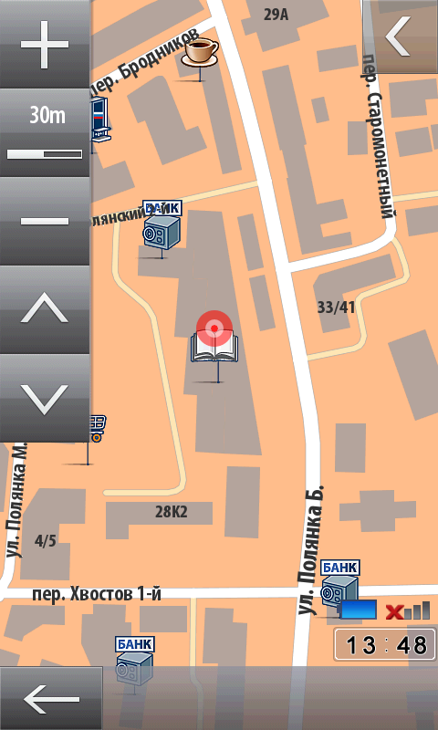 На тестовом коммуникаторе была предустановлена программа навигации ПроГород. Эта система выпускается компанией CD Com. В штатный комплект программа не входит, желающие могут приобрести ее отдельно. Комплекс относительно недавно появился на рынке, но взял довольно быстрый старт. После нескольких дней использования программы за рулем впечатления о ней остались положительные. Впрочем, автор не покидал пределы Москвы и области, поэтому о качестве покрытия регионов ничего определенного сказать нельзя. Придется довериться информации с официального сайта программы. Чья картооснова используется в ПроГороде, неизвестно. Не исключено, что CD com самостоятельно прорабатывает покрытие. Что до столицы и ее области, с их картографическим покрытием в ПроГороде все в порядке. Программа уверенно находит необходимые здания и даже в курсе о дворовых проездах. Есть несколько несущественных замечаний только по покрытию областных трасс.