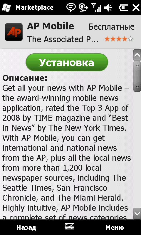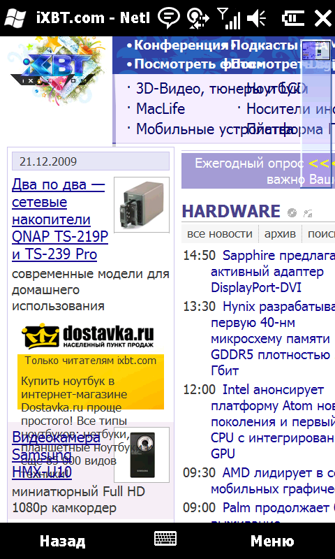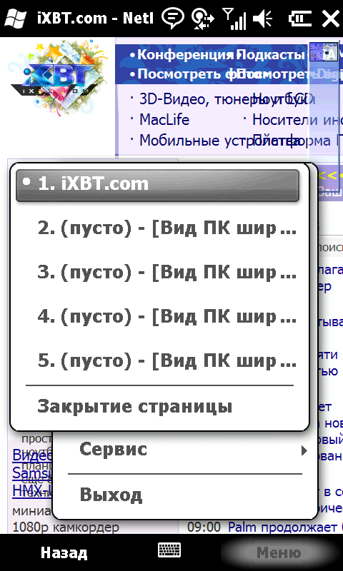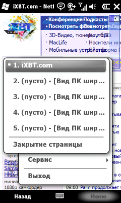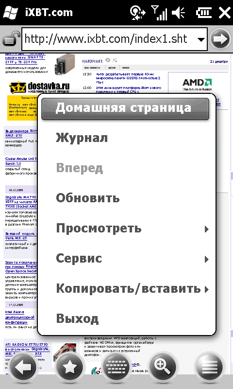 Изменениям подвергся и Mobile Internet Explorer. Теперь открытую страницу можно прокручивать пальцем, им же изменять масштаб. Ключевые элементы управления выполнены в виде отдельных иконок, удобных для нажатия. Они автоматически исчезают с экрана во время просмотра страницы и появляются после любого нажатия по дисплею. В целом, значительный шаг в сторону таких грандов мобильного блуждания по Интернету, как Opera и Safari. Вот только до внедрения отдельных вкладок для открытых страниц у разработчиков руки не дошли.