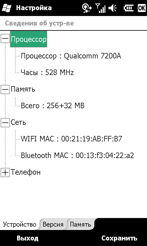 - Процессор Qualcomm MSM 7200A, частота 528 МГц;
