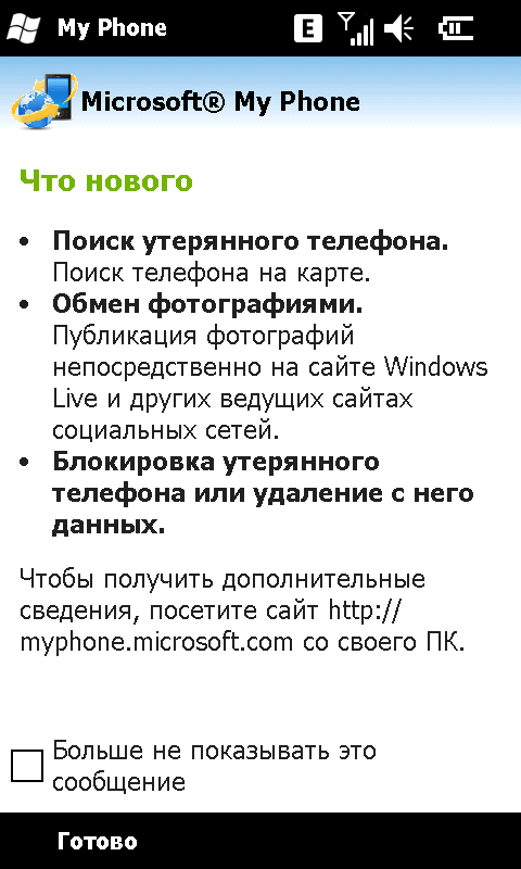Расширился набор приложений, связанных с различными сервисами Microsoft, прежде всего службой MSN. Файлы, контакты, заметки, задачи теперь при желании можно синхронизировать с удаленным сервером Microsoft при помощи программы Microsoft My Phone (за приемлемый объем виртуального дискового пространства взимается абонентская плата). В программе Marketplace пользователь может приобрести и установить различные дополнительные приложения для коммуникатора. До недавнего времени этот сервис на территории России не работал, но сейчас, похоже, все в порядке.