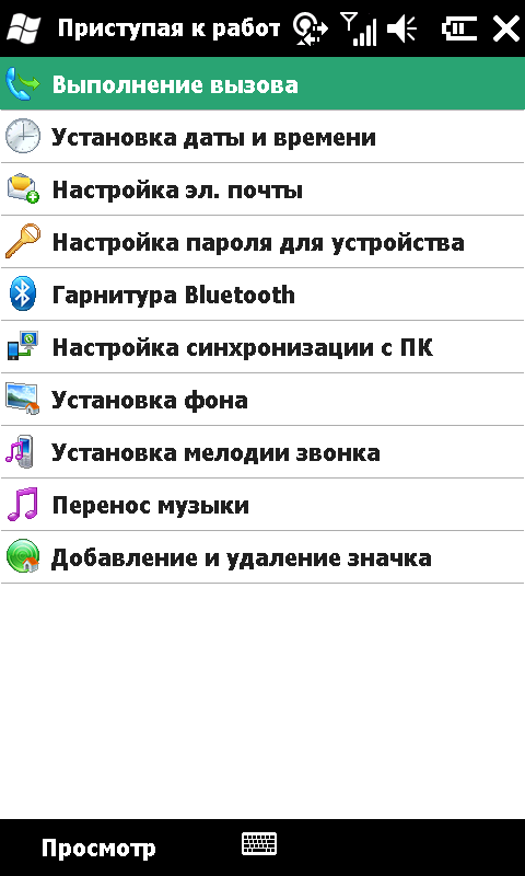 Появилась удобная программа, позволяющая произвести начальные настройки коммуникатора — «Приступая к работе». Теперь необходимые операции конфигурирования программ и служб компьютера собраны под одной крышей.