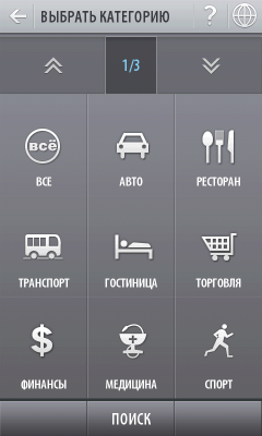 ПроГород может показывать так называемые 3D виды зданий на карте. Впрочем, пользы от этой внешне красивой и забавной функции нет. Куда важнее возможности поиска различных объектов на карте, для этого предусмотрено разветвленное меню.