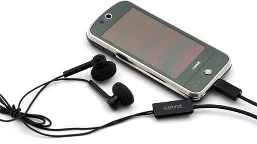 Штатная проводная стереогарнитура коммуникатора подключается через miniUSB совместимый порт. Громкость динамиков гарнитуры достаточная, качество звука хорошее, в комплект входят мягкие амбюшуры. Жаль только, что разработчики не предусмотрели возможность подключения собственных наушников и не разметили 3,5 мм разъём. На модуле с микрофоном находится большая кнопка, действующая в качестве клавиши приема вызова, либо запускающая программу голосового управления коммуникатором в случае долгого нажатия.