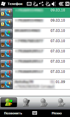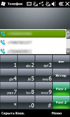 Еще ниже находятся клавиши начала и окончания вызова. Вторая кнопка по совместительству также сворачивает текущее окно программы. Между ними расположена утратившая какую-либо значимость центральная кнопка исчезнувшего пятипозиционного джойстика, реликт эпохи классических КПК.