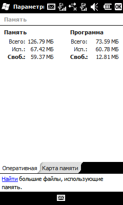 В качестве замены стандартной клавиатуры WinMobile 6.5, совершенно не совместимой с пальцеориентированным вводом текста, установлена программа Spb Keyboard.