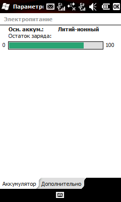 Включение дисплея вместе с подсветкой, естественно, сказалось на времени автономной работы, причем значительно — чтение текста в Haali Reader с автопрокруткой разрядило аккумулятор за 16 часов. Впрочем, и такой результат ощутимо выше среднего по парку WinMobile-коммуникаторов.