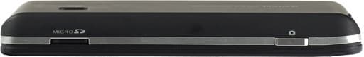 В левом нижнем углу корпуса находится отверстие для крепления шнурка. Там же расположены микрофон, разъем microUSB, 3,5-мм разъем для гарнитуры и слот для пера. Несмотря на то, что стило выдвигается вниз и теоретически может выпасть, реальные шансы такой ситуации невелики: перо крепко удерживается в креплении. Вышедшее из моды средство управления у S1205 раздвигается телескопически и имеет большую длину при средней толщине.