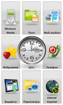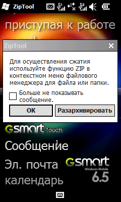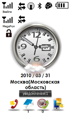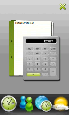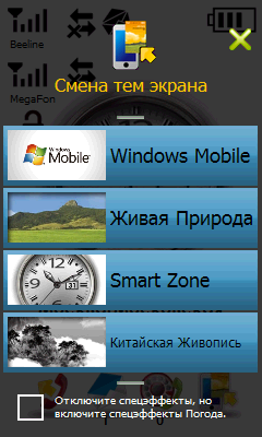 При описании дополнительного программного обеспечения в коммуникаторе S1205 прежде всего необходимо отметить интересный и удобный менеджер рабочего стола Gigabyte GSmart Touch. Как и в ранее рассмотренном собрате, эта программа заменяет обычный вид рабочего стола Windows Mobile, предлагая на выбор три темы, помимо стандартной. Наиболее функциональной является тема Smart Zone, в которой большое количество ярлыков программ и индикаторов состояния раскидано по девяти различным окошкам. Перемещаться между ними можно с помощью движений пальцем в трех направлениях. В дополнение к темам можно переключиться на экран, заполненный различными виджетами.