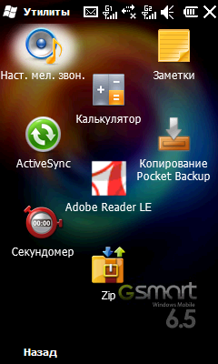 Во втором каталоге «Утилиты» можно обнаружить программу для просмотра PDF-документов (Adobe Reader LE), приложение для работы с резервными копиями данных (Pocket Backup), удобный секундомер и программу для работы с ZIP-архивами.
