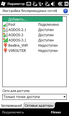 Коммуникатор оснащен стандартным набором беспроводных интерфейсов ближнего действия. Модули Bluetooth и Wi-Fi управляются средствами операционной системы и не являются источниками проблем. Все настройки стандартны, работа модулей стабильна.