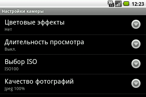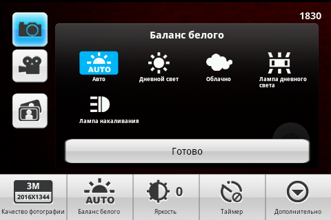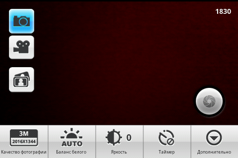 Настройки работы фотокамеры весьма подробны. Основные собраны в подменю соответствующей программы, дополнительные находятся в отдельном окне. Интерфейс приложения лаконичен и удобен. Остается лишь сожалеть об отсутствии клавиши управления камерой. Максимальное разрешение фотографии составляет 2016×1344 пикселей. Видеосъемка ведется с разрешением 720×480 пикселей в формате MPEG4/H.263. Длительность видеоролика ограничена только количеством свободного места на карте памяти.