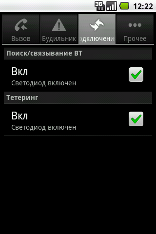 Несколько слов о «фишке» Highscreen Cosmo — светодиодах на нижнем торце коммуникатора. Несомненно, эта особенность выделяет героя обзора среди своих конкурентов и собратов по мобильному парку. Полезность этой функции условна, но внимание она привлекает. Особенность работы светодиодов заключена в следующем: пользователь может настроить частоту смены цветов, их количество и время работы в зависимости от различных событий. Наиболее очевидные из них — поступление входящего вызова, будильник и воспроизведение музыки. Кроме того можно активировать «светомузыку» при поступлении сообщения, пропущенном вызове, функционировании Bluetooth, Wi-Fi и зарядке батареи. Все настройки вынесены в отдельное меню, где также можно изменить цвета и последовательность их смены.