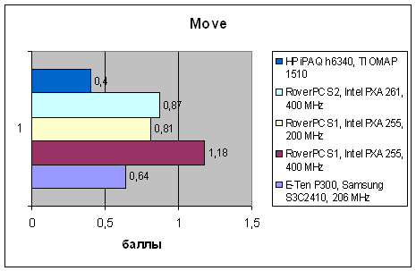 | VOBenchmark | HP iPAQ h6340, TI OMAP 1510 | RoverPC S2, Intel PXA261, 400 MHz | RoverPC S1, Intel PXA255, 200 MHz | RoverPC S1, Intel PXA255, 400 MHz | E-Ten P300, Samsung S3C2410, 206 MHz |