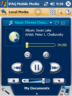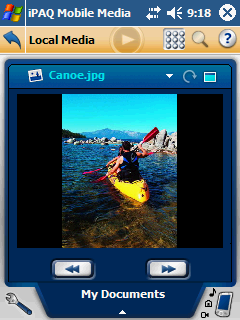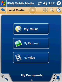 Апплет Local Media позволяет просматривать находящиеся на КПК видео и картинки, а также прослушивать музыку. Главное окно апплета очень напоминает то, что появилось в Windows XP Media Center Edition и ряде сторонних программ – медиа-центров. Крупные кнопки с указанием типа медиа, вообще-то, рассчитаны на дистанционное управление, но и в данном случае упрощают навигацию. Все виды медиа воспроизводятся при помощи собственного универсального проигрывателя, он даже позволяет просматривать картинки, не выходя из оболочки программы.