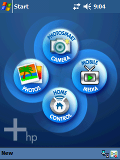 Основной экран rx3715 отличается от стандартного окна Outlook Today, характерного для всех «деловых» Pocket PC. На рабочий стол теперь выносятся крупные кнопки для вызова четырех приложений – HP Photosmart Camera (включение встроенной камеры), Photos – для просмотра фотографий, iPAQ Mobile Media – для управления медиатекой, и Home Control – для дистанционного управления бытовой техникой.