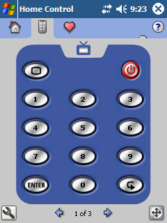 Nevo Home Control – известнейшая программа для дистанционного управления бытовой техникой посредством инфракрасного порта. Возможности ее очень широки, - она позволяет «подвязать» к КПК всю дистанционно управляемую технику в доме. При необходимости ее можно распределить по комнатам, и выбирать ту, где вы сейчас находитесь – это полезно, если в доме много бытовой техники, хотя никто не мешает, скажем, образовать группы «Дом», «Офис» и т.д., и управлять всей техникой, с которой вы общаетесь на протяжении дня. В списке поддерживаемых устройств – телевизоры, кабельные ресиверы, видеомагнитофоны, музыкальные центры, DVD-проигрыватели, ПК класса Media Center с инфракрасным управлением, спутниковые тюнеры, проекторы и т.п. К сожалению, нет кондиционеров, а это оборудование также часто оснащается инфракрасным ДУ. Для каждого типа устройств существуют пресеты для множества производителей (обычно команды управления в рамках одной марки стандартны). Если же вашего устройства в списке нет, или оно не откликается на стандартные команды (а для нашей страны это очень актуально, так как здесь присутствуют многочисленные марки, малоизвестные в Европе и США, а модели известных фирм порой кардинально отличаются), будет уместно воспользоваться режимом обучения. Для этого берем фирменный пульт управления устройством, располагаем его напротив окна ИК-порта (а оно находится в верхнем торце КПК), включаем режим обучения в Nevo Home Control и поочередно нажимаем кнопки на пульте и виртуальные клавиши на КПК. Таким образом, можно без проблем «подружить» программу даже с достаточно экзотичными устройствами.