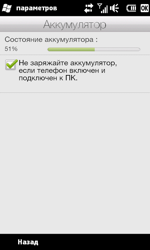 Кстати, будьте внимательны, просматривая статус аккумулятора. Флажок «Не заряжайте аккумулятор, если телефон включен и подключен к ПК» работает как обещано: при USB-подключении батарея не заряжается!