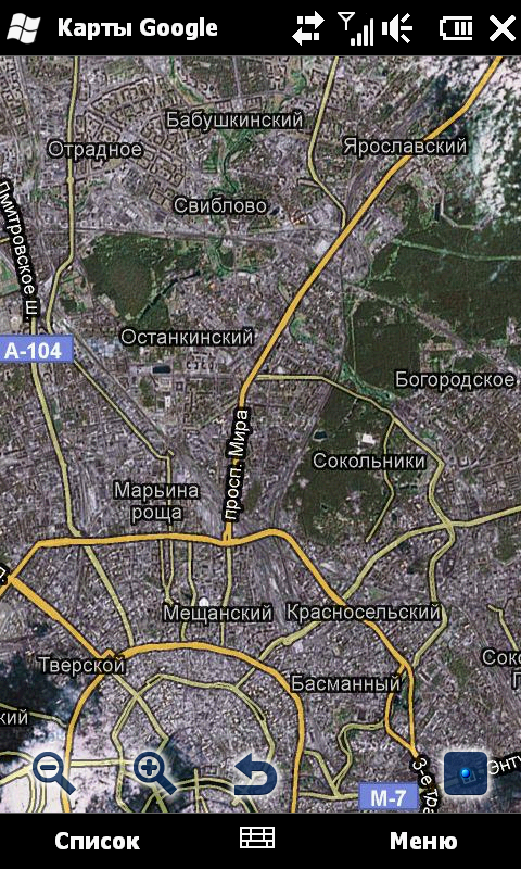 Но в туннелях и в условиях плотной застройки сигнал все же теряется. И тогда на помощь приходит вспомогательный режим, определяющий положение по координатам базовых станций сети GSM (т.е. без помощи приемника GPS). Точность определения зависит от покрытия оператором конкретного района: где-то лучше получается у МТС, где-то Мегафона. В пределах МКАД ошибка позиционирования невелика, от нескольких десятков до пары сотен метров. За городом ситуация стремительно ухудшается: километр туда, километр сюда. Как известно, для бешеной собаки пара верст не крюк. Да и энергию выключение приемника GPS экономит незначительно.