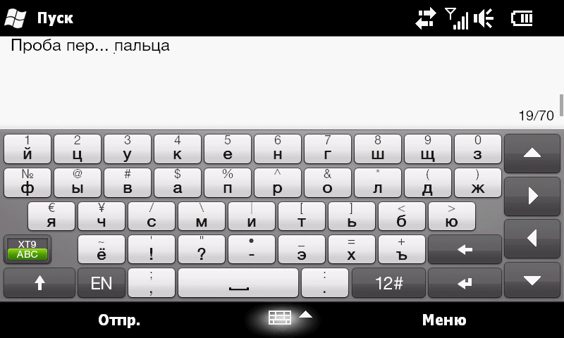 Громадный емкостной экран помогает и в наборе текста. В портретном положении, печатая «в два пальца», даже не особо подготовленный пользователь вполне достигает скорости набора 120 символов в минуту. Кроме хорошей точности попадания по нарисованным кнопкам этому помогает и традиционная для HTC виброотдача (haptic feedback), слегка потряхивающая корпус при распознавании нажатия.