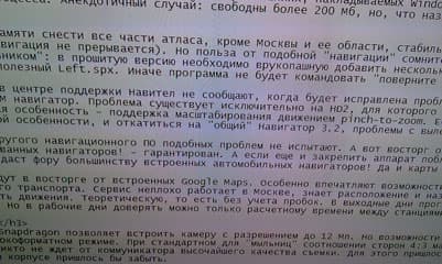 Если с карты памяти снести все части атласа, кроме Москвы и ее области, стабильность слегка увеличивается (по крайней мере, минут по 20 навигация не прерывается). Но польза от подобной «навигации» сомнительна. Особенно с учетом необходимости «работы напильником»: в прошитую версию необходимо врукопашную добавить несколько файлов звукового сопровождения, в том числе весьма полезный Left.spx. Иначе программа не будет командовать «поверните налево». С правым поворотом проблем нет.