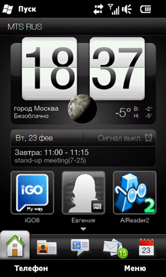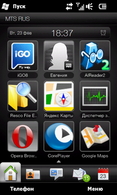 Включите аппараты. Положите рядом. Этого достаточно для понимания: оболочка собственной разработки HTC преобразила скучный интерфейс Windows Phone (Mobile 6.5). В компании это хорошо понимают: даже Android, куда более дружелюбный в сравнении с Windows Mobile 2003, стыдливо прикрыт великолепием HTC Sense, продолжением TouchFlo 3D. Сейчас по этой проторенной дорожке идет и Samsung с его TouchWiz, и другие поставщики. И, в отличие от производителя с логотипом в виде надкушенного яблока, приверженцы ОС от Microsoft не стесняются использовать новейшие интегрированные платформы со всевозможными расширениями.