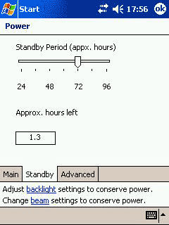 В апплете Power изменилось графическое представление индикаторов остатка заряда и добавилась вкладка Standby, в которой можно рассчитать ожидаемое время, на которое хватит оставшегося заряда. В окне апплета рядом со ссылкой на управление яркостью подсветки размещена ссылка на опции инфракрасного порта, отключение которого также позволяет экономить энергию.