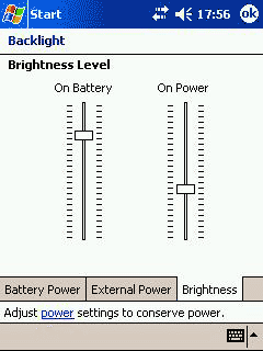В регулировках яркости опции включения и автоматического выключения экрана при внешнем и автономном питании разнесены на отдельные вкладки, регулировка светимости также раздельная для внешнего и внутреннего питания; каждая шкала имеет 25 градаций.