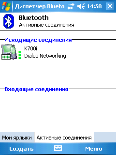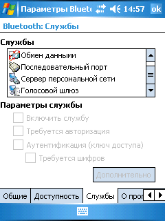 В мастере соединений можно настроить подключение стереонаушников, гарнитуры, телефона для использования его в качестве модема, синхронизацию карманного компьютера с настольным, отправку и получение файлов, доступ в локальную сеть через точку доступа и подключение Bluetooth клавиатуры.