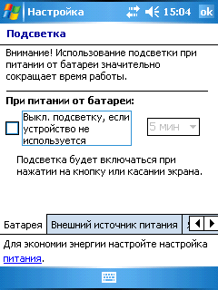 Зато в hx2790 осталось много артефактов от своего предшественника и Windows Mobile 2003, которые, казалось бы, должны быть нивелированы выходом пятой версии операционной системы. Во-первых, дополнительный Ni-MH аккумулятор, основная задача которого раньше заключалась в поддержании оперативной RAM памяти в активном состоянии. В предыдущей версии операционной системы это имело смысл, информация пользователя хранилась в энергозависимой памяти и при разряде аккумулятора могла быть утеряна. Какой смысл от дополнительного аккумулятора в WM5.0, где вся информация хранится в энергонезависимой флэш памяти? Дополнительное время работы он не обеспечивает, компьютер отключается точно по истечении заряда основной батареи. Во-вторых, на закладке настройки питания находится индикатор приблизительного времени нахождения компьютера в состоянии ожидания. Как и дополнительный аккумулятор, это было важно в предыдущей версии операционной системы, теперь же в данной настройке нет смысла. Для hx2790 можно выставить минимальное время автономной работы компьютера без опасений потерять данные при разряде основного аккумулятора.