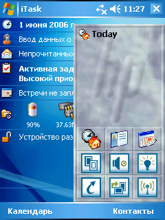В большинстве случаев пользователи доустанавливают стороннее ПО, которое обеспечивает схожую функциональность, здесь оно предустановленно, что называется «из коробки». Утилита называется TodayPanel Lite V2.11 от компании RhinoCode и, помимо прочего, обеспечивает быстрый доступ к настройкам экрана Today. При необходимости, можно обновить утилиту до версии Professional, за определенную сумму денег.