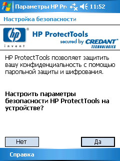 Остальные утилиты располагаются в меню настроек. Наиболее важная из них — HP Protect Tools — программный комплекс, отвечающий за конфиденциальность информации и блокировку компьютера. Поддерживаются несколько типов шифрования данных и аутентификации пользователя, в том числе с помощью отпечатков пальцев. Существенных отличий от предыдущей версии программы, используемой в КПК hx2750, нет. Подробно система защиты описана в статье по предыдущей модели карманного компьютера, поэтому останавливаться на рассказе о ней нет необходимости. Стоит единственно отметить, что на дешифрование и шифрование данных при включении и выключении устройства требуется определенное время, иногда значительное.