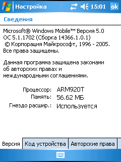 - 64МБ оперативной RAM памяти. Стандартное значение для устройств на базе Windows Mobile 5.0