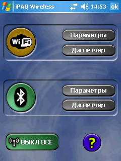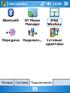 Управление всеми беспроводными интерфейсами и доступ к настройкам осуществляется через единый интерфейс программы iPAQ Wireless, иконка которой вынесена на экран Today.