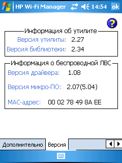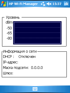 Для работы в сетях Wi-Fi используется модуль связи стандарта 802.11b и утилита HP Wi-Fi Manager. Отличий от стандартной утилиты операционной системы WM5.0 немного, самое заметное — отображение мощности сигнала на диаграмме.