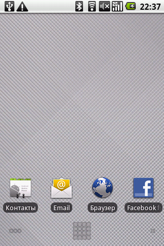 На основном экране находятся следующие виджеты и ярлыки приложений: часы, Яндекс Карты, Агент Mail.ru — клиент одноименной сети мгновенных сообщений, РБК — программа для чтения новостей с одноименного портала, Афиша — удобная программа для поиска развлечений в городе от популярного журнала и интернет-портала. Там же находятся иконки контактов, интернет-браузера и ссылка на портал LG MusicClub. Нажатие на этот значок привело к открытию страницы LG MusicClub в браузере, где было предложено скачать и установить одноименное приложение (казалось бы, уже установленное в коммуникаторе). Попытка выполнить это действо закончилась неудачно — программа устанавливаться не захотела. (В новой версии прошивки программа устанавливается). Ну да ладно, вышеуказанный портал предоставляет также доступ к различному контенту, в подавляющем числе платному: музыке, видео и Java-играм. На портале коммуникатор определился, как еще не выпущенный LG C710. (С новой прошивкой коммуникатор определяется правильно). Отраден факт, что как полноценный Google-phone, LG Optimus имеет доступ в обычный Android Market.