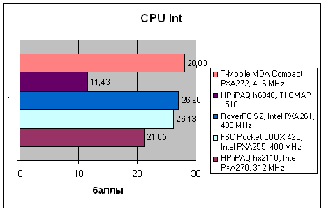 Хотя производительность процессора в норме (как обычно, она практически пропорциональна тактовой частоте), скорость выполнения операций с памятью заметно ниже, чем у обычных КПК (речь идет не о скорости поиска, а о передаче данных). Соответственно, и операции с видео, особенно, если речь идет не о масштабировании объектов, а о заполнении видеобуфера, осуществляются медленнее.