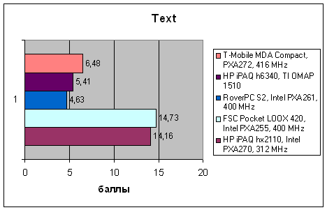 Мы сравнили результаты тестирования T-Mobile MDA Compact с помощью пакета VOBenchmark с аналогичными достижениями других распространенных коммуникаторов на Pocket PC. Для сравнения мы указали также показатели КПК среднего класса, по характеристикам наиболее близкие к коммуникаторам.