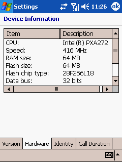 | VOBenchmark | HP iPAQ hx2110, Intel PXA270, 312 MHz | FSC Pocket LOOX 420, Intel PXA255, 400 MHz | RoverPC S2, Intel PXA261, 400 MHz | HP iPAQ h6340, TI OMAP 1510 | T-Mobile MDA Compact, PXA272, 416 MHz |