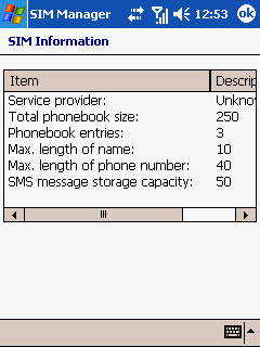 SIM Manager – стандартная для WM 2003 Phone Edition программа, открывающая доступ к телефонной книге на SIM-карте. С ее помощью можно просматривать список абонентов, осуществлять вызовы, копировать записи в память коммуникатора, создавать новые, просматривать свойства карты. Список, конечно, небогатый, но ограниченные возможности прямой работы с памятью SIM характерны почти для всех коммуникаторов.