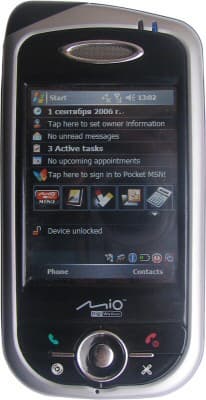 Mio Menu. Программная оболочка, группирующая основные приложения в меню, подобное телефонному, а также добавляющая ряд пиктограмм-ссылок в экран Today. Состав последних можно настраивать. Однако количество допустимых вариантов очень невелико, количество выводимых одновременно ярлыков – тоже (всего 4, пятым обязательно будет вызов главного меню Mio Menu). Ссылки на служебные апплеты системы (управление Bluetooth, индикатор заряда батареи, управление памятью, GPS) более полезны, но их иконки слишком малы, искать их не очень удобно. В общем, Mio Menu – безусловно, дополнительный плюс для пользователя, но вряд ли ее наличие стоит рассматривать как сколько-нибудь заметное преимущество при выборе модели.
