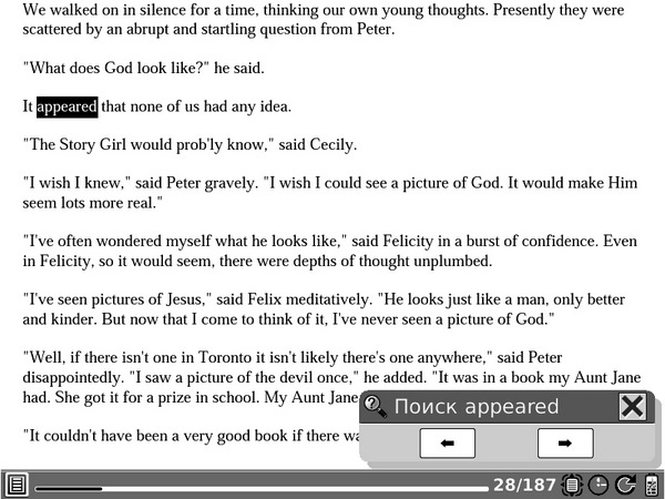 Итак, давайте рассмотрим основные возможности просмотрщика. Наибольшее количество настроек имеется при просмотре форматов FB2 и DOC. Единственные минусы — нельзя просмотреть оглавление и не поддерживаются сноски. Итак, поехали. Имеются настройки шрифта. Можно изменить как сам шрифт, так и его размер и начертание (курсив и жирный). Изменению подлежит и межстрочное расстояние, оно указывается в процентах. Как и во всех остальных форматах, есть поиск слов. Если вдруг кодировка файла FB2 не отображается корректно, можно сменить ее прямо в настройках, без помощи компьютера. Все те же самые возможности имеются и при просмотре формата DOC. Нормально поддерживаются переносы слов.