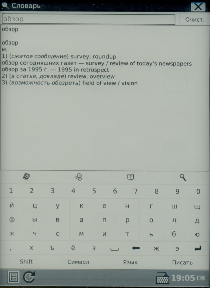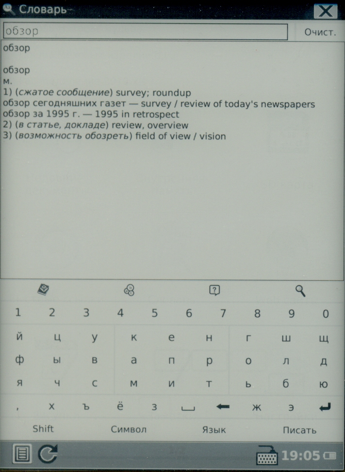 Помимо программ для чтения текста в разнообразных форматах, в Onyx Boox i62ML установлены несколько дополнительных приложений. Прежде всего, это Lingvo c англо-русским универсальным словарем. Также в памяти находятся браузер, калькулятор, календарь и различные игровые приложения.